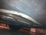 1) Jack the passenger side of the car up. Use a floor jack and a safety block under that part of the car where this is recommended. If you just toss it under there and jack, you can push stuff around that isn't meant to support the weight of the car.