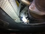 4) Use a allen wrench (hex key) to remove the single bolt that holds the sensor in place. See photos. You may alternatively remove the wiring harness first, but it doesn't really matter, as long as the car is off... (who would crawl under the car while it was on? Also this stuff is right next to the passenger side exhaust so...don't touch it if it is warm/hot, etc.)